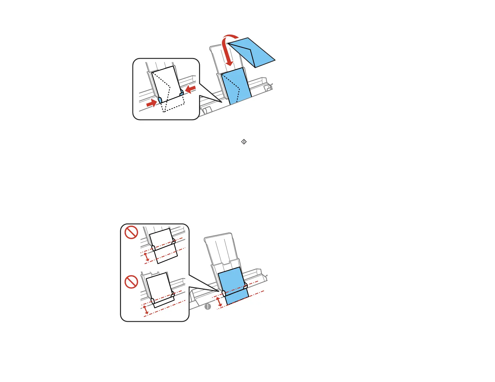 • Load one sheet or envelope at a time.