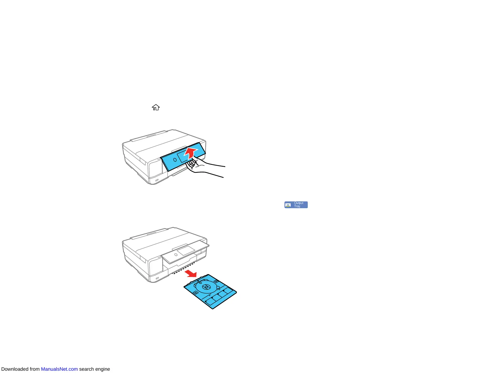 4. Make sure nothing is on the output tray, then press the icon to close it.