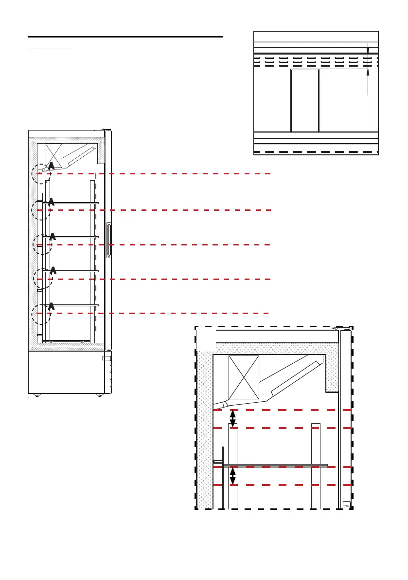 U moet 3 cm ruimte laten tussen de producten van elke plank zodat de lucht vrij kan circuleren.