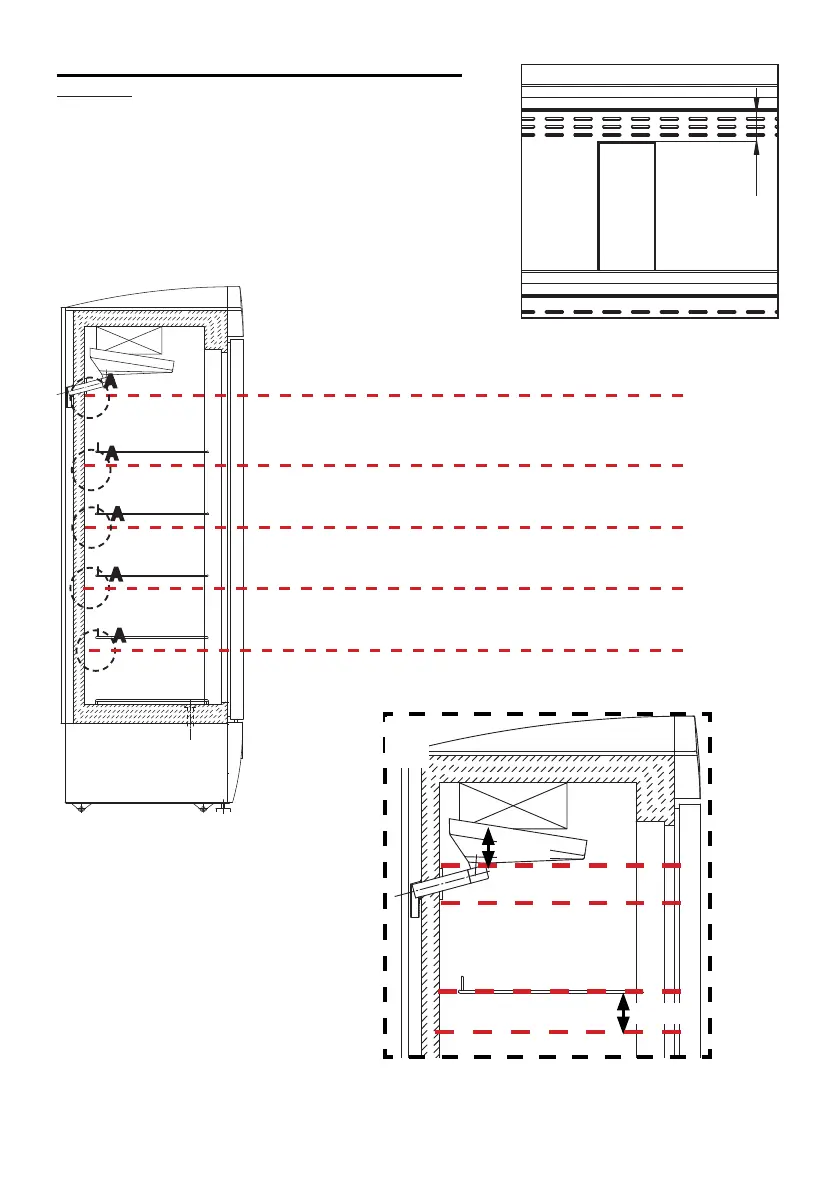 Pour une correcte circulation de l’air il faut laisser un espace livre de 3 centimètres entre les produits