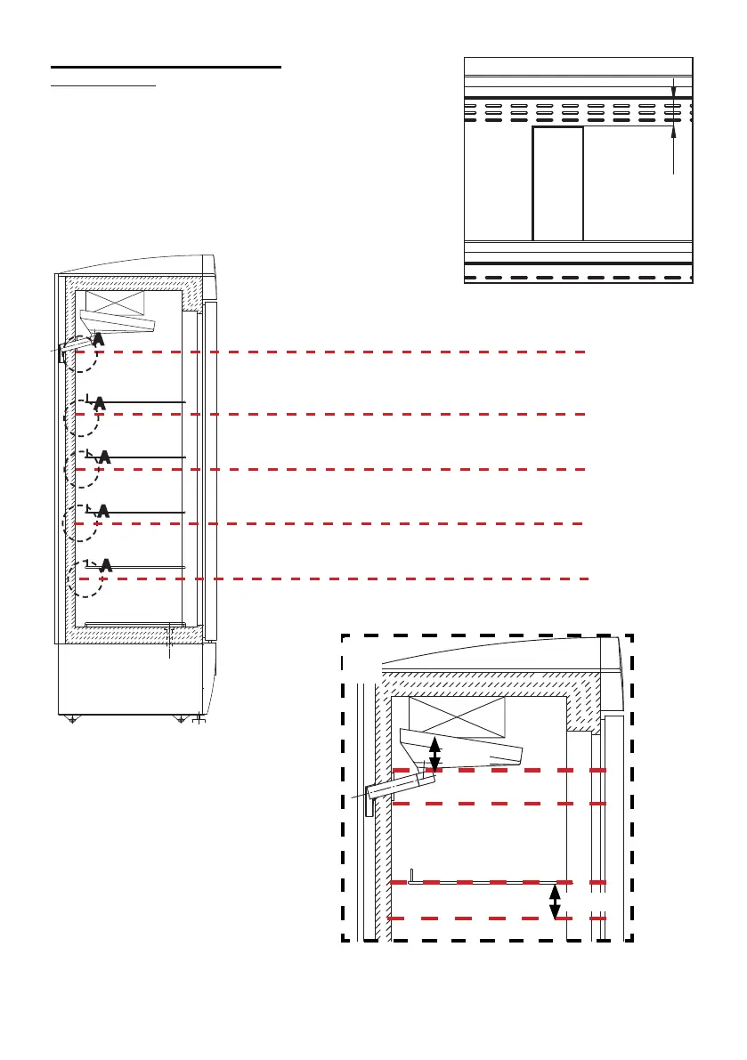 Zur Gewährleistung des korrekten Luftstroms, ist ein Abstand von 3 cm zwischen Produkt und