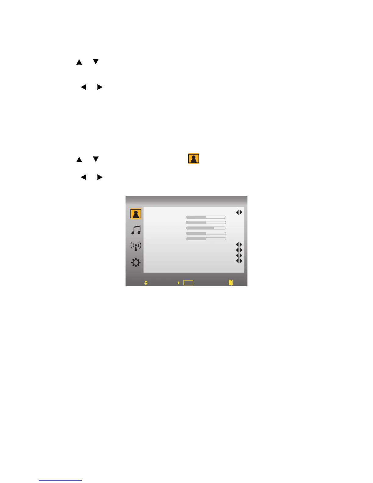 • Picture Mode: To select the picture mode between Standard, Soft, User,