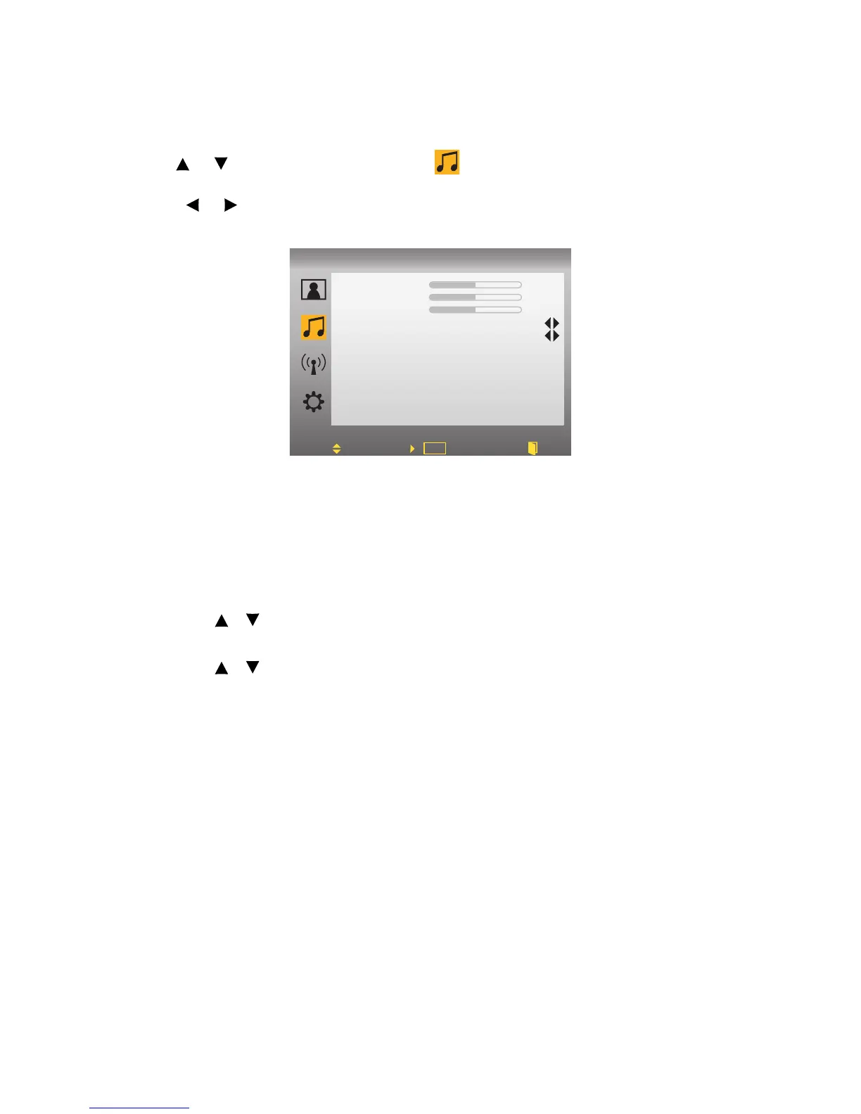 Step 2:Use / key to move the highlight bar to the audio sub-menu.