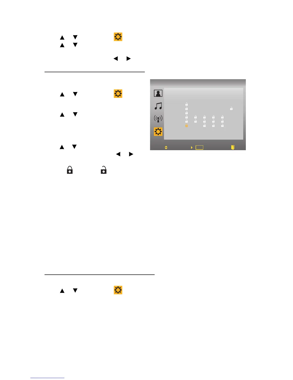 5.Select “V-chip” and use or to turn V-chip on or off.