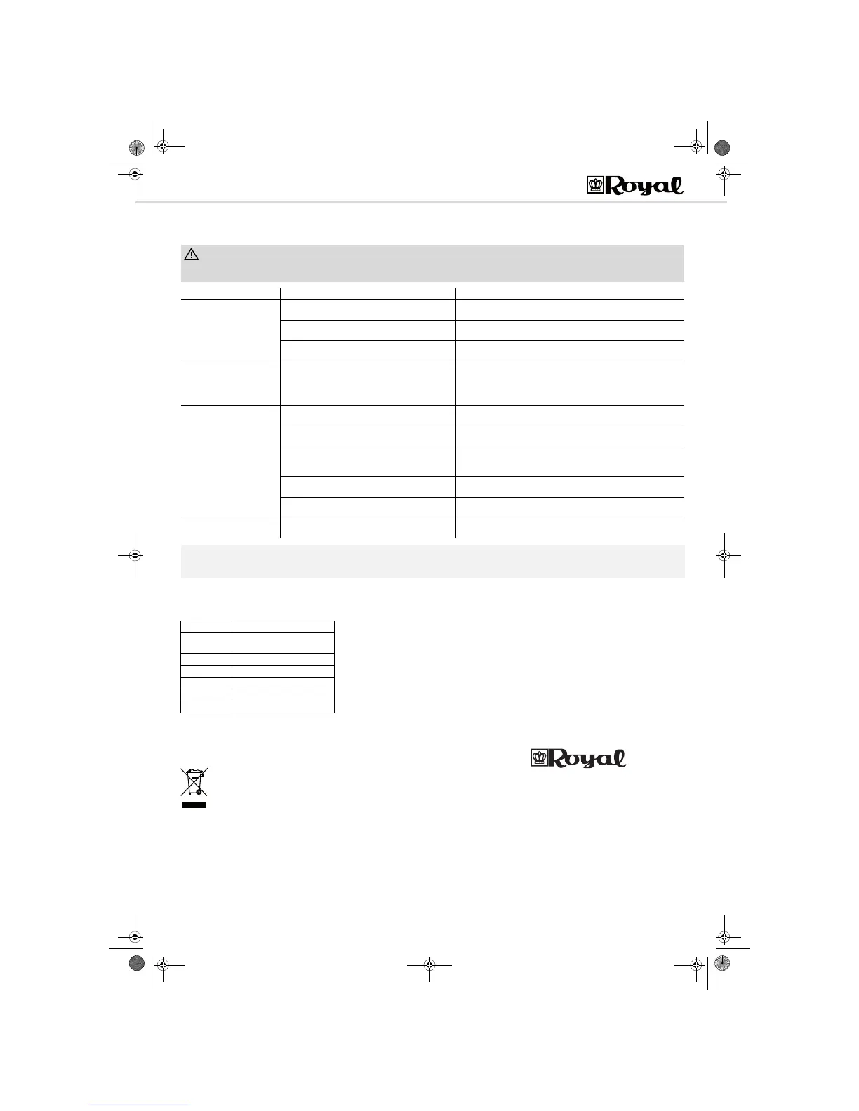 Antes de contactar a su concesionario oficial Royal‚ al socio de servicio Royal o a su mercado especializado, verifique con la siguiente tabla si usted puede