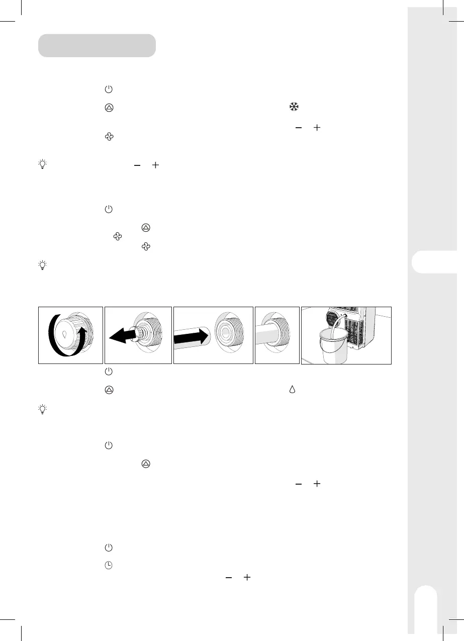 1 - Увімкніть пристрій, оберіть режим роботи (охолодження, сушіння, вентилятор) та відрегулюйте задану