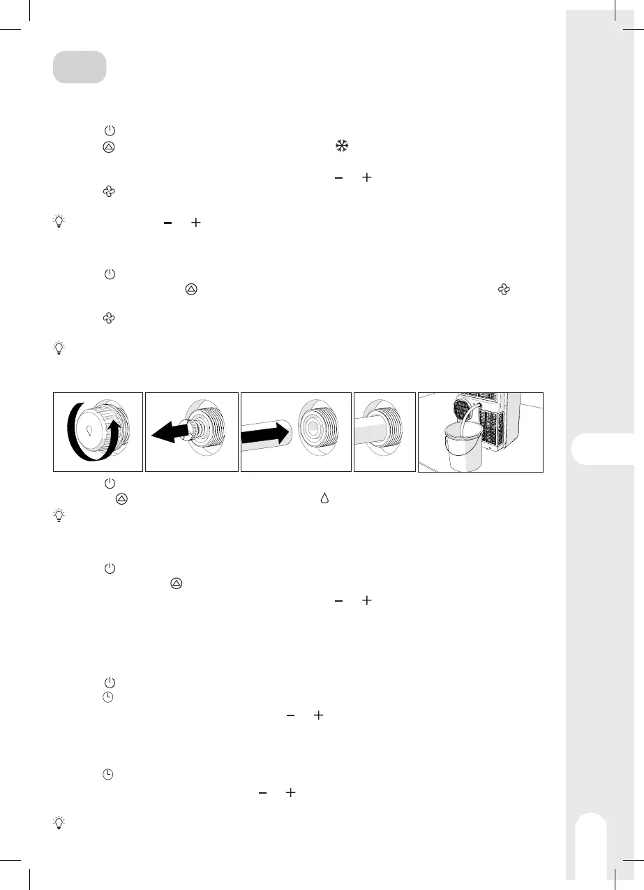 1 - Switch on the appliance, choose the operating mode (Cool, Dry, Fan) and adjust the setpoint temperature and fan speed