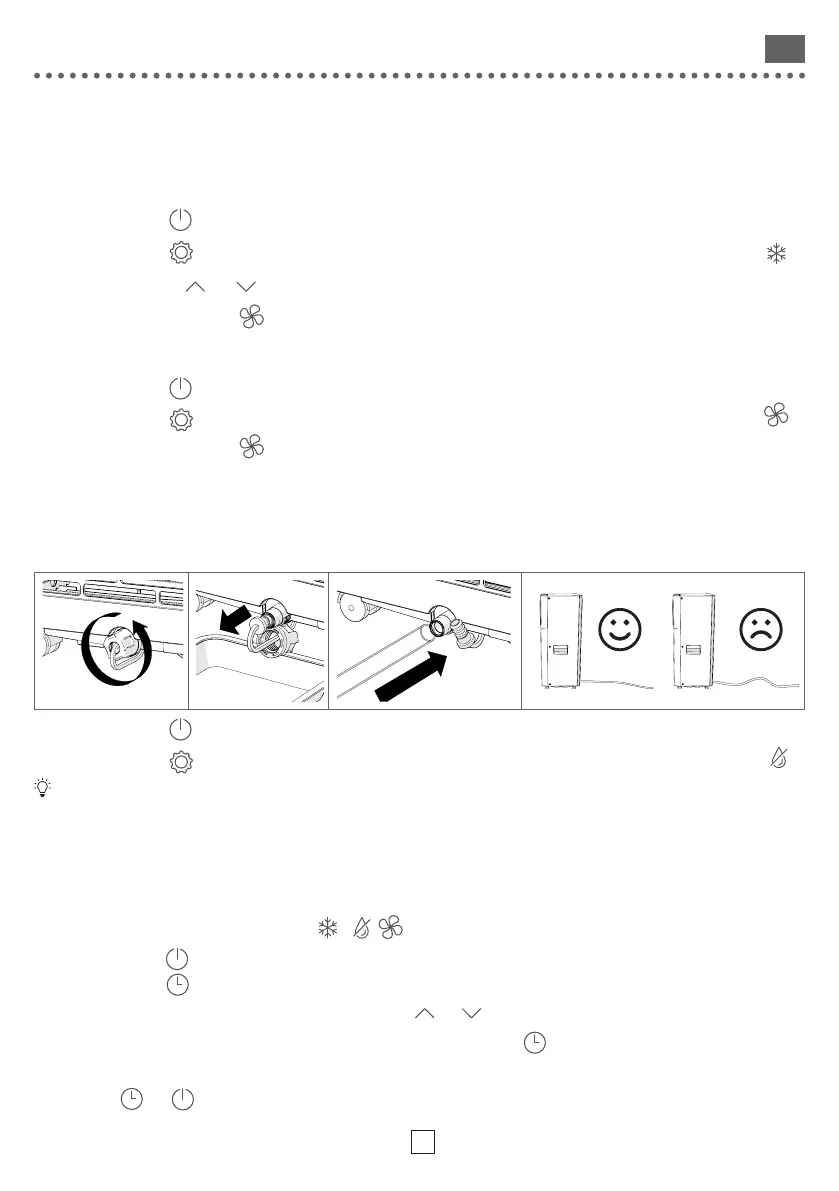 1 - Увімкніть пристрій, оберіть режим роботи ( , , ) та відрегулюйте задану температуру та швидкість вентилятора