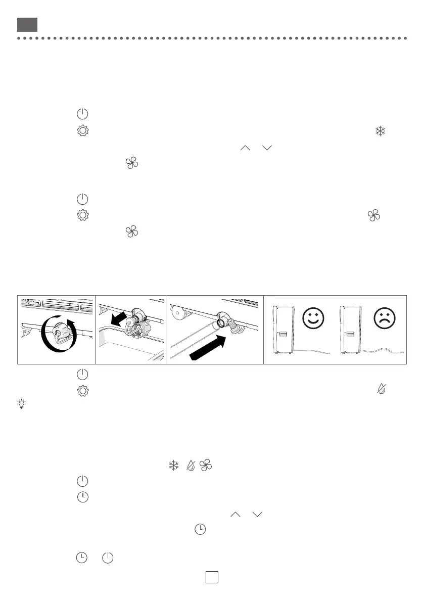 1 - Porniți aparatul, alegeți modul de funcționare ( , , ) și reglați temperatura de referință și viteza ventilatorului