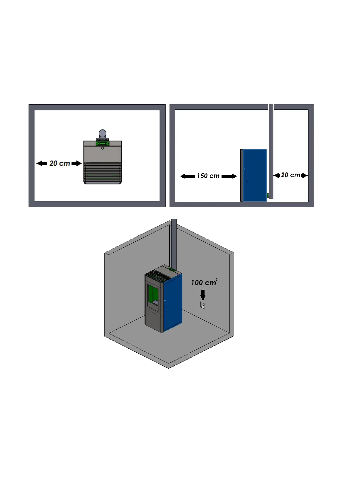 La stufa deve essere installata rispettando le misure minime previste, controllando sempre le distanze di sicurezza da