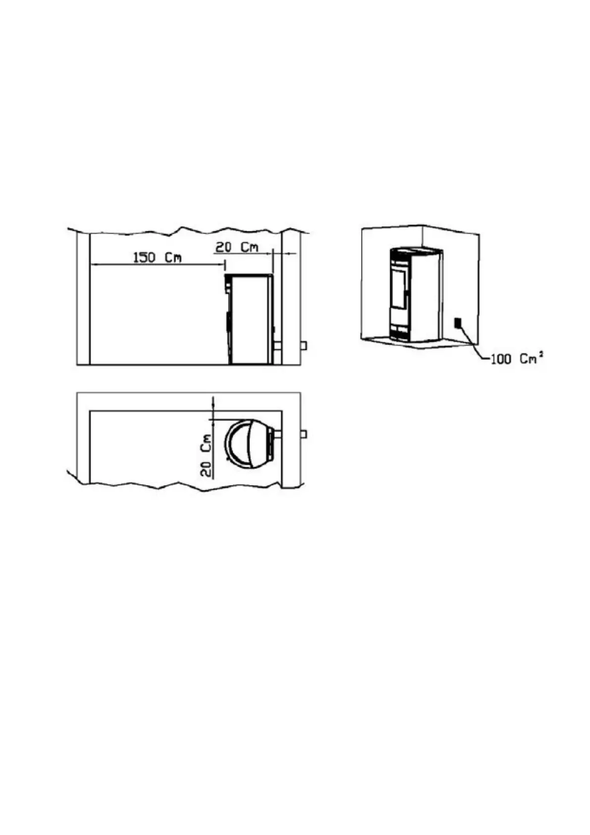 La estufa debe instalarse respetando las distancias mínimas previstas y verificando que se cumplan todas las distancias