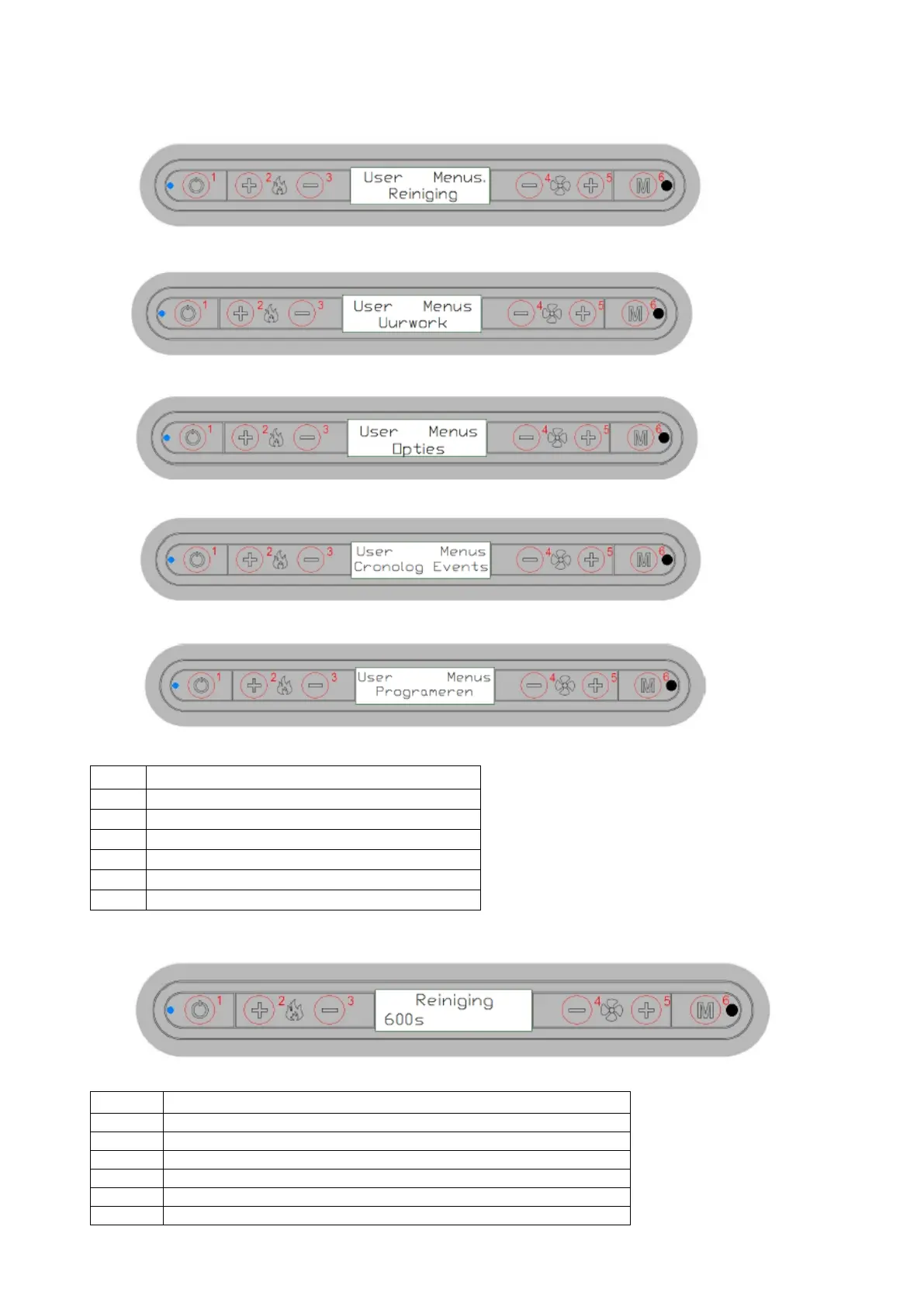 Voor de optie “gebruikersmenu” druk op toets 6. Het toetsenbord is als volgt ingesteld: