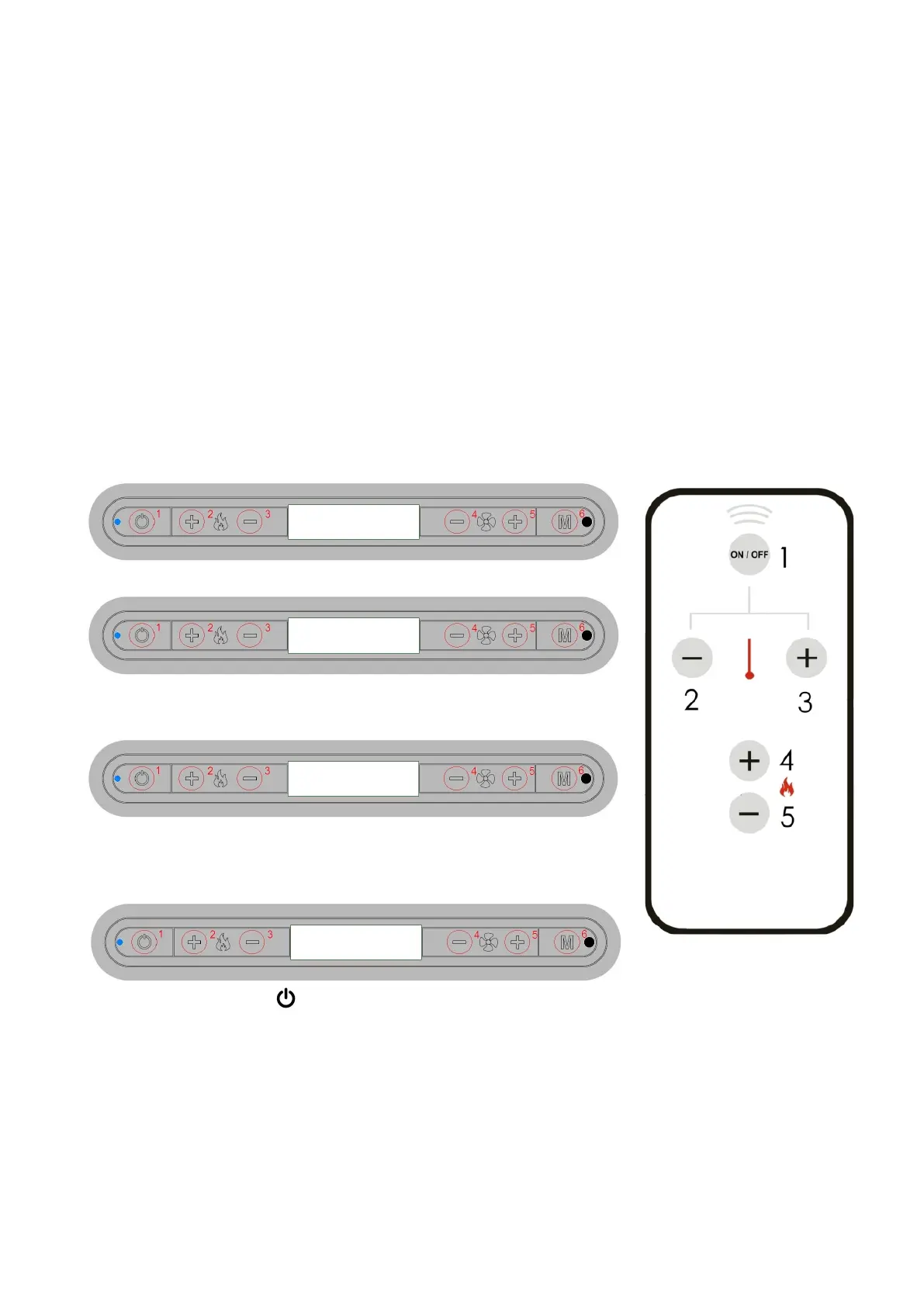 Appuyer sur la touche 1 permet d’allumer le poêle (dans l’éventualité où celui-ci serait éteint) ou de l’éteindre (dans