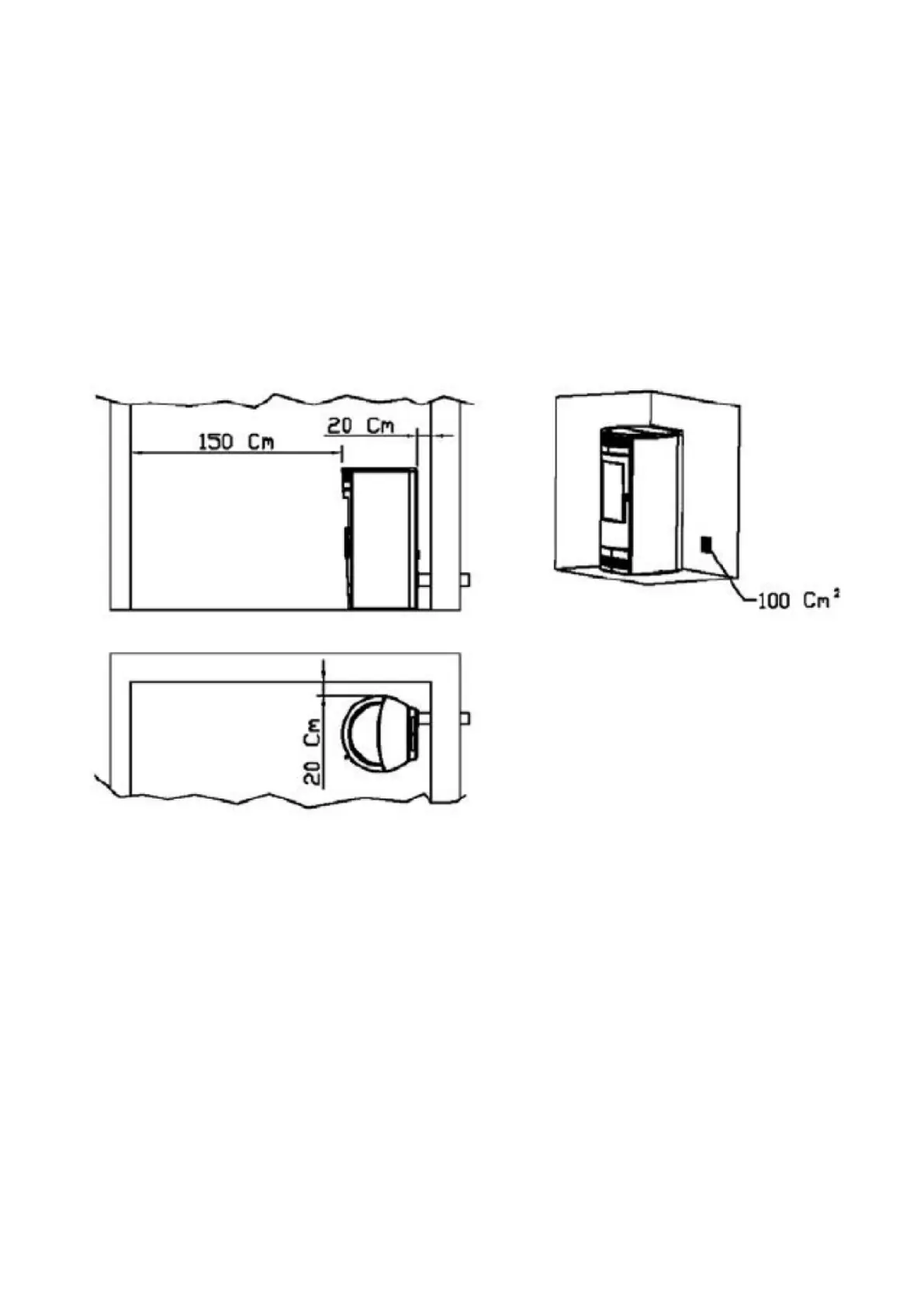 La stufa deve essere installata rispettando le misure minime previste, controllando sempre le distanze di sicurezza da