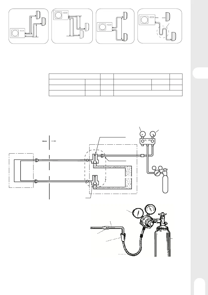 • Se la lunghezza del tubo B1+B2 supera i 20 m, il refrigerante deve essere caricato a 20 g/m.
