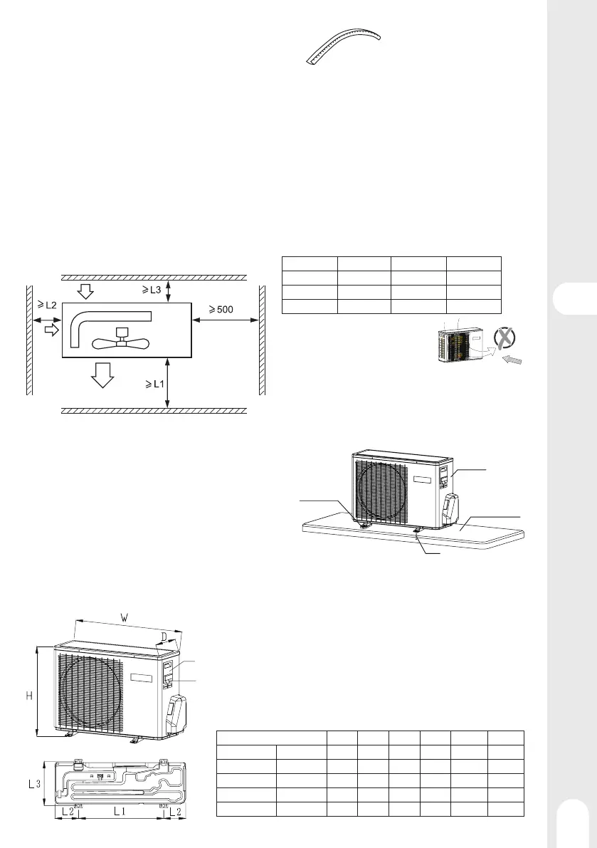 • Ustawienie urządzenia, w miejscu gdzie jego cztery boki są zablokowane, nie nadaje się do jego instalacji. Potrzebujesz co najmniej 1