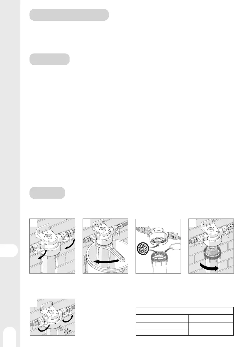 This filtration station is placed on the general cold water inlet. Provide the necessary spacings for moun-