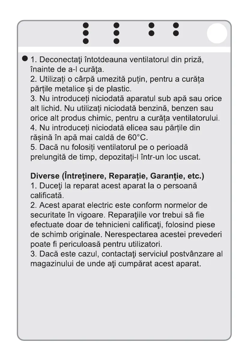EQUATION GE-45Y - Fan Maintenance and Safety; Cleaning the Fan; Service, Repair, and Warranty Information