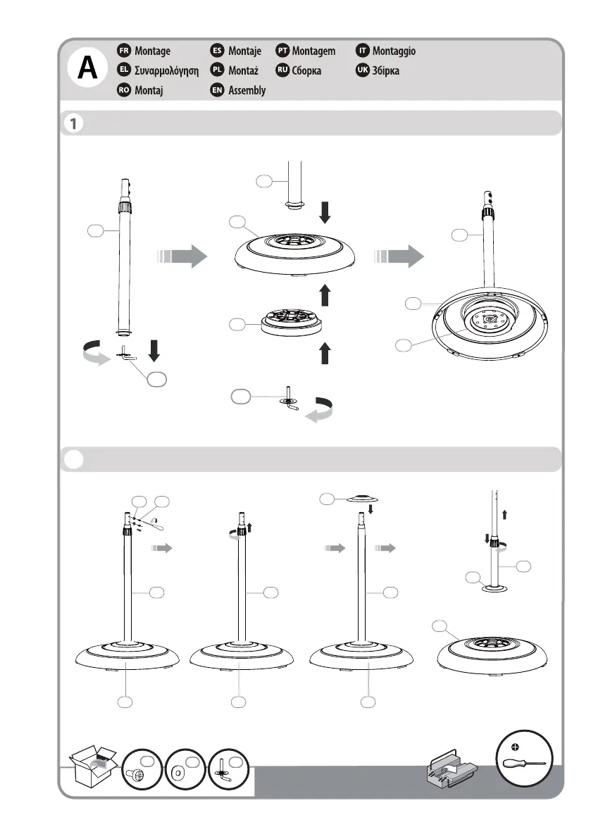 EQUATION GE-45Y - Product Assembly Guide; Assemble Base and Lower Stand; Connect Upper Stand and Mount Fan