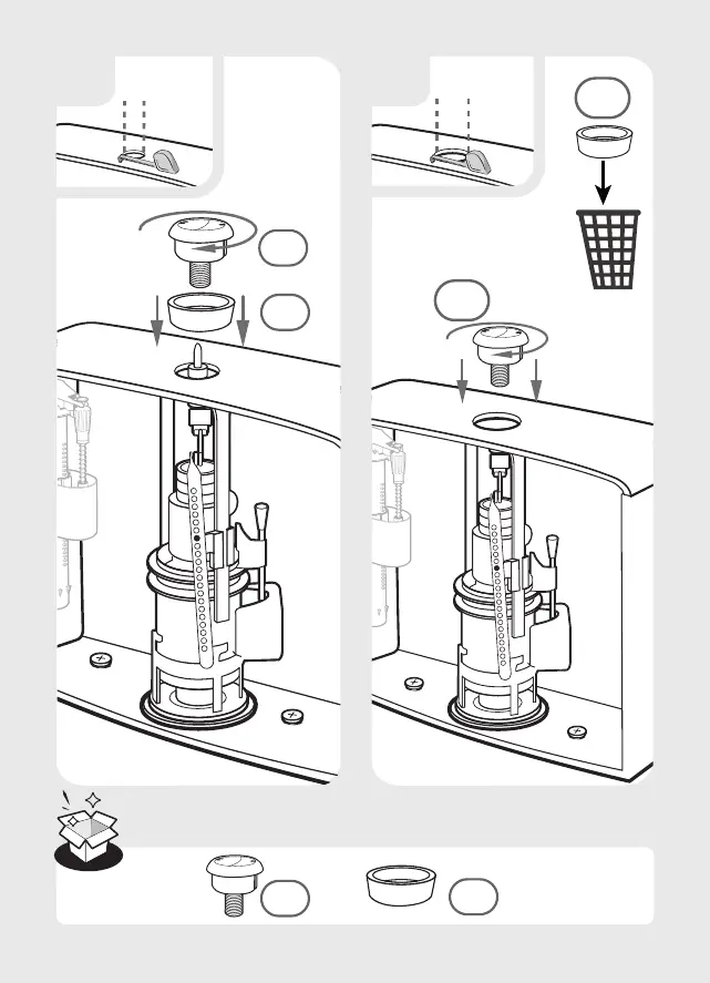 EQUATION M400 - Step 9 A & 9 B: Flush Button Mechanism Installation; Button for Small Holes (9 A); Button for Large Holes (9 B)