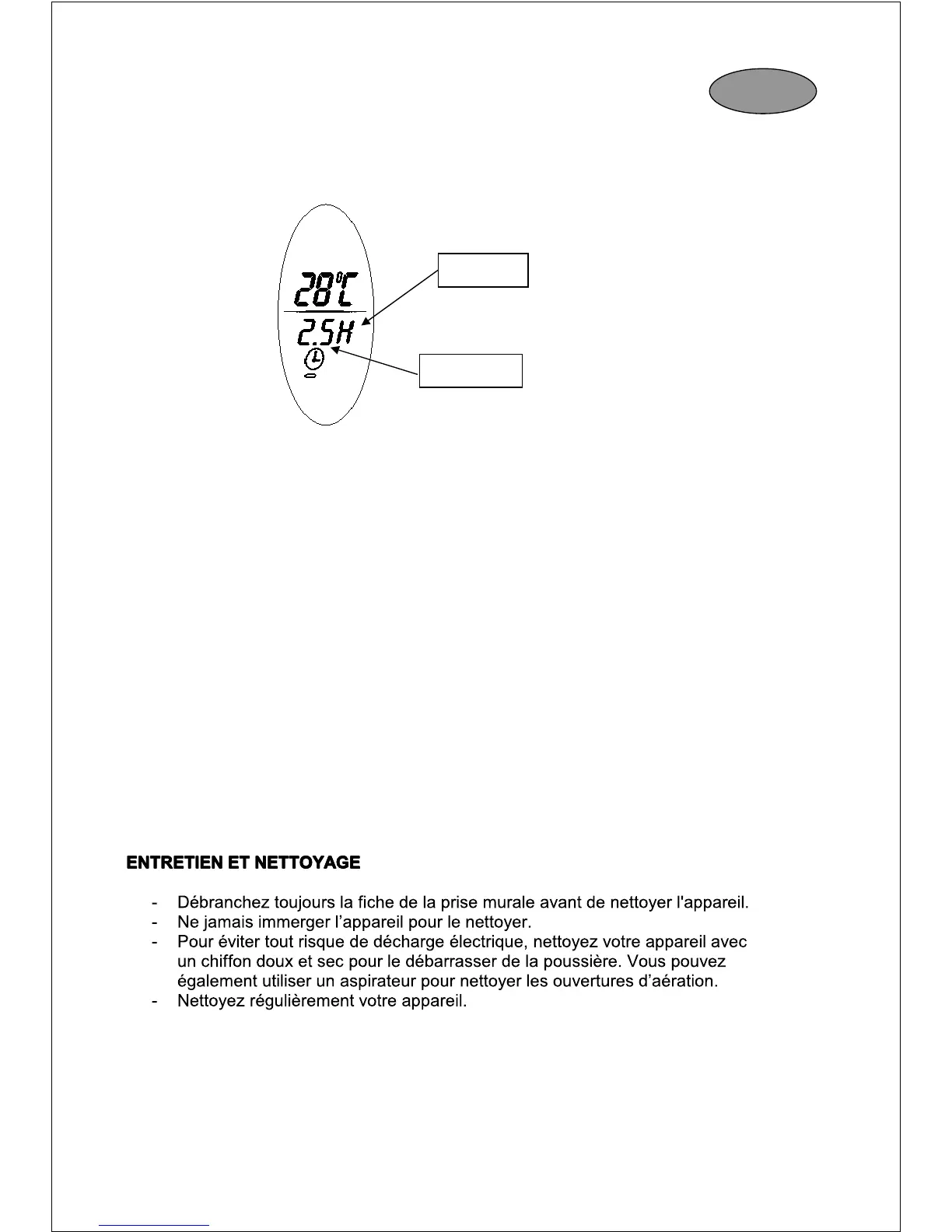 appuyez sur le bouton “TIMER” (MINUTERIE), le chiffre 0 et la lettre ‘H’ indiquant les heures, s’affichent.