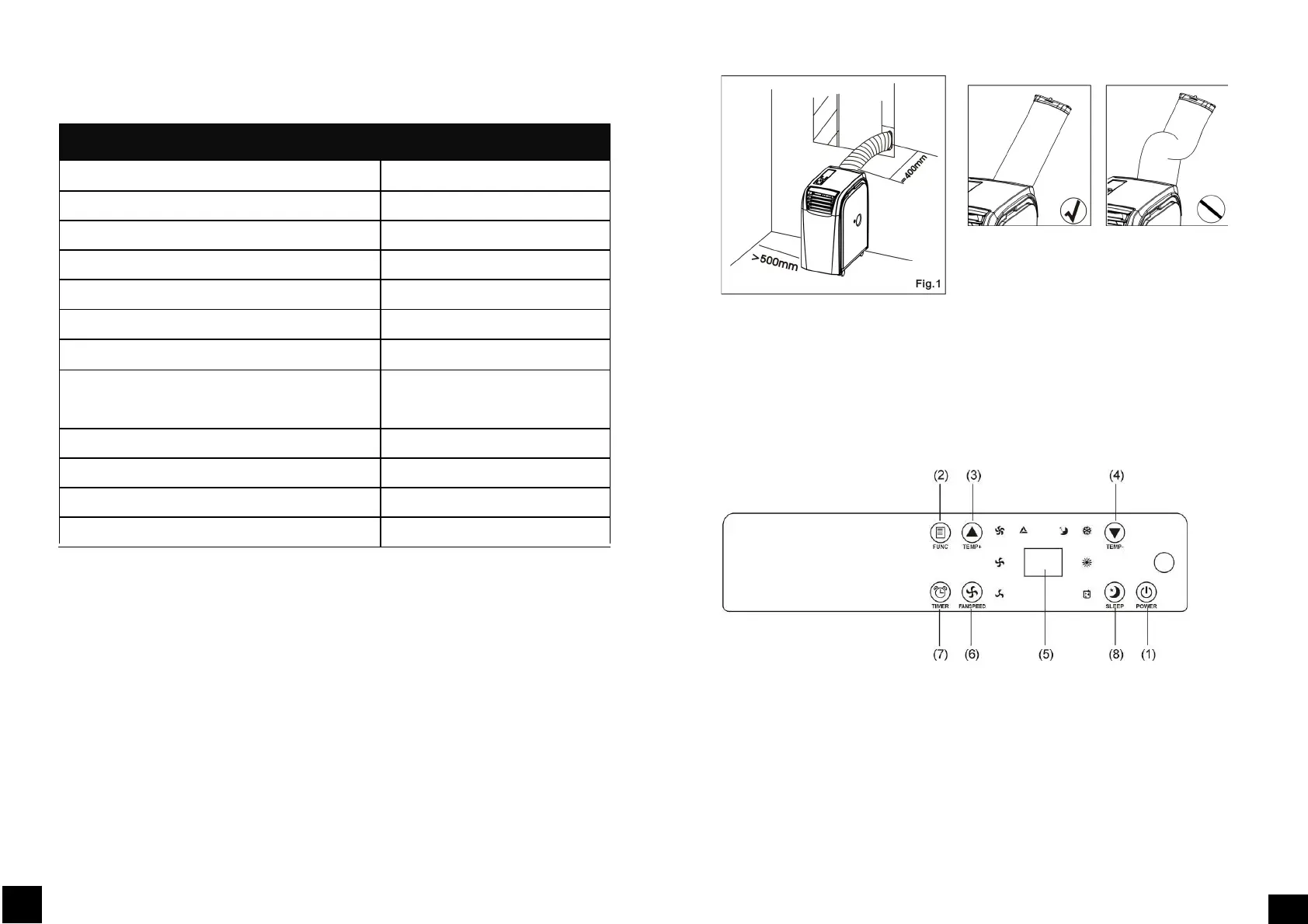 5) Deve ser respeitada uma distância mínima de 500 mm entre o lado do filtro do