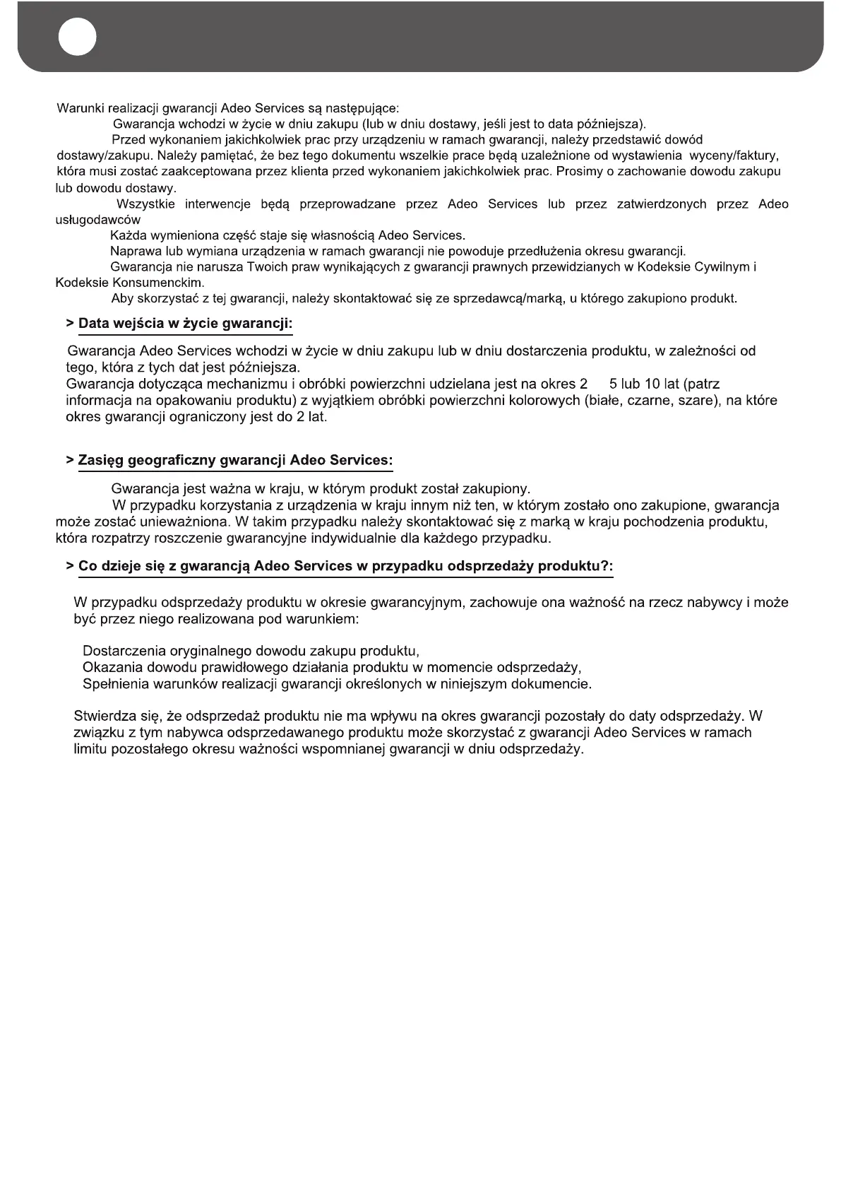 Ogólne warunki gwarancji producenta Adeo Services