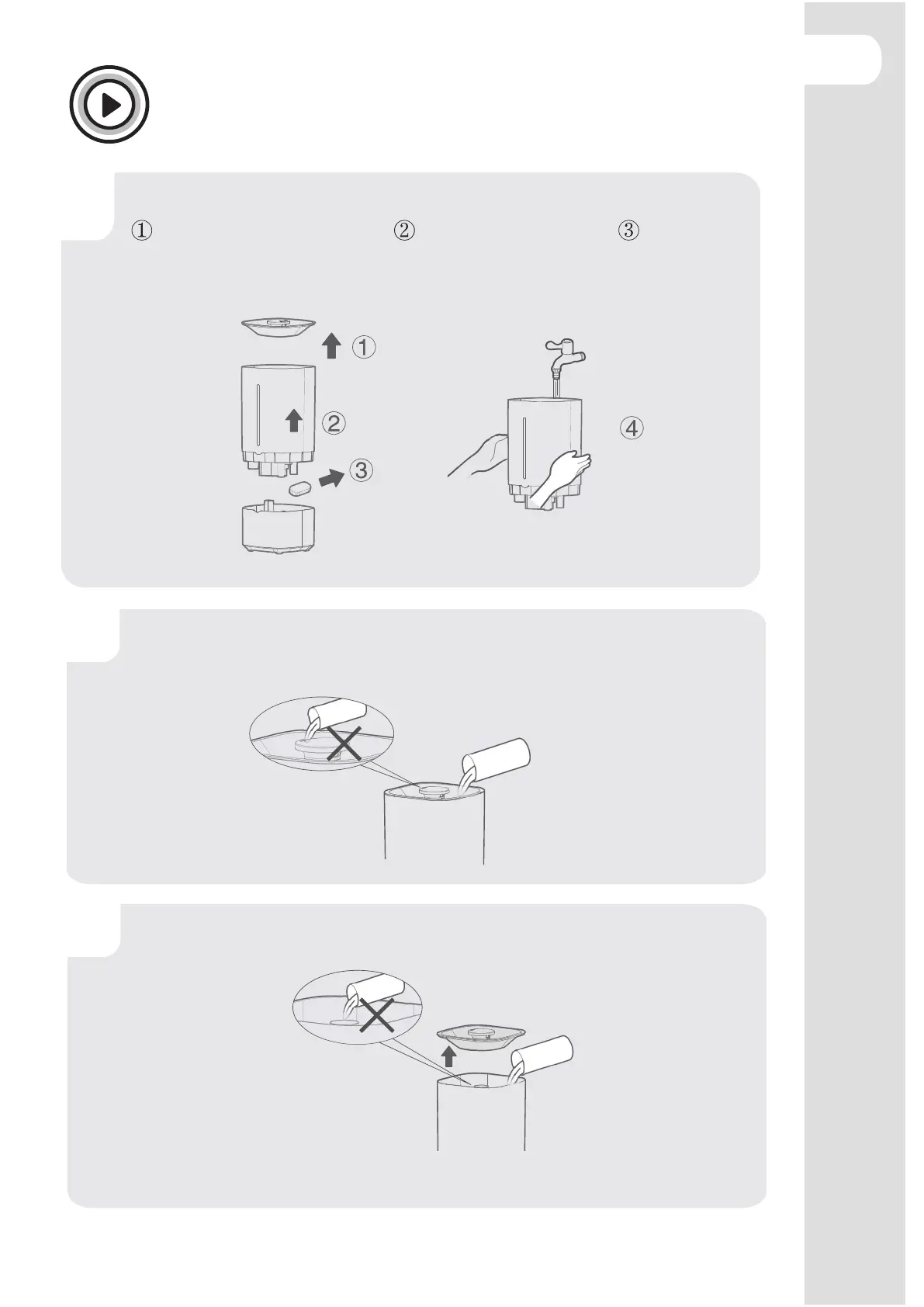 Retirez le couvercle supérieur et remplissez le réservoir d'eau ; n'injectez pas