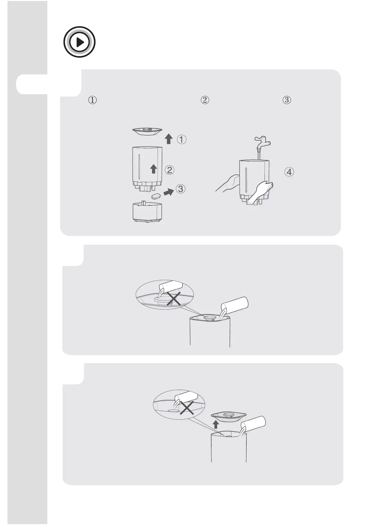 Rimuovere il coperchio superiore e riempire il superiore. Non mettere acqua nel