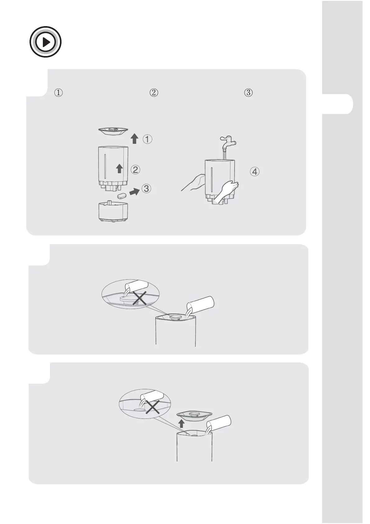 3.Αφαιρέστε το άνω κάλυμμα και γεμίστε τον κάδο νερού. Μη ρίχνετε νερό μέσα