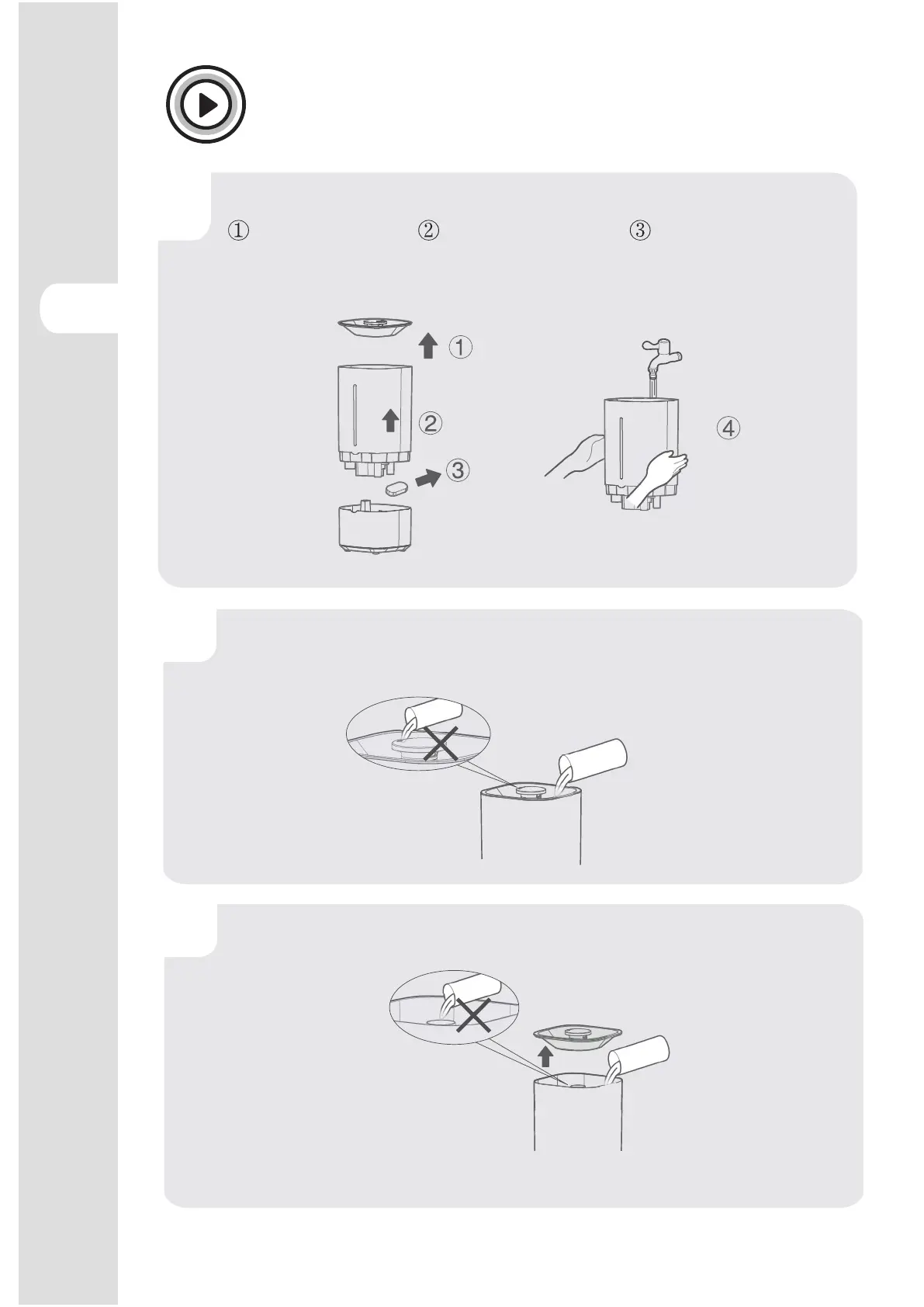 Zdjąć górną pokrywę i napełnić zbiornik na wodę; Nie wstrzykiwać wody do