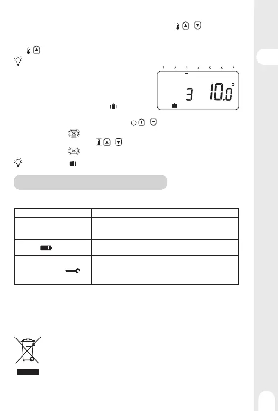 Ejemplo: Es sábado, son las 7 h, la temperatura programada es de 16ºC, puedo aumentarla a 19ºC con la