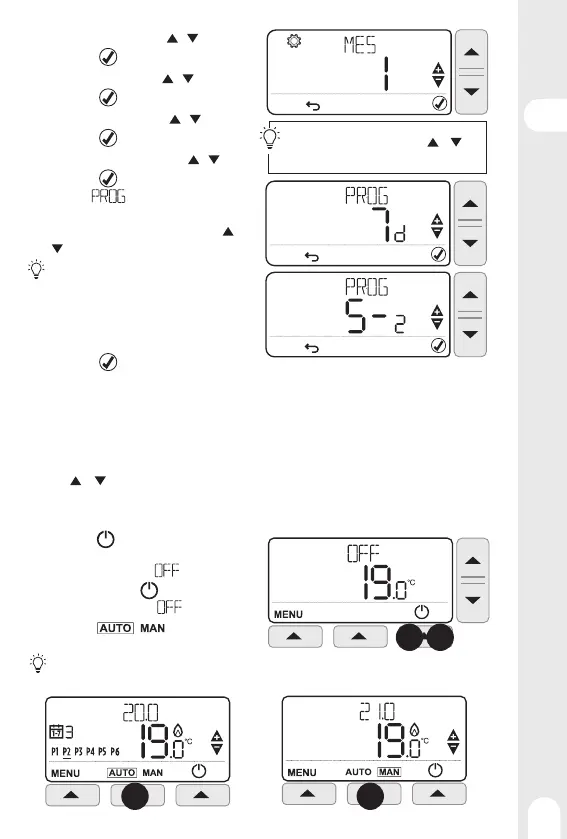 • MAN (Manual): El termostato hace un seguimiento de la temperatura establecida ajustada con las