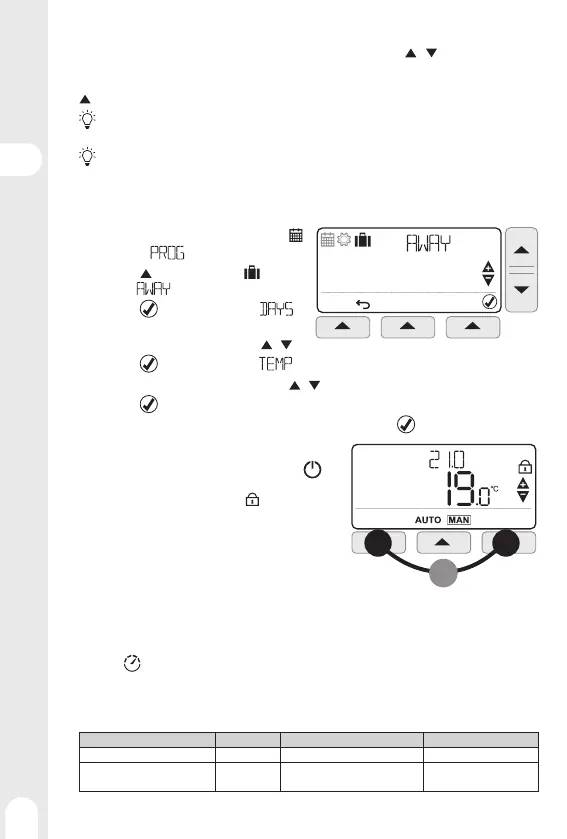 Pressionar AUTO (botão central) para forçar o retorno à temperatura programada sem esperar pela faixa