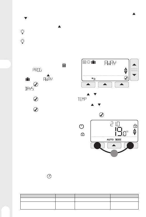 Πατήστε AUTO (κεντρικό πλήκτρο) για να αναγκάσετε μια επιστροφή στην προγραμματισμένη θερμοκρασία χωρίς