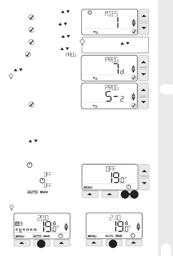 Nie można aktywować trybu AUTO lub RĘCZNY (MANUAL), kiedy termostat jest w trybie OFF (ochrona przed zamarzaniem)