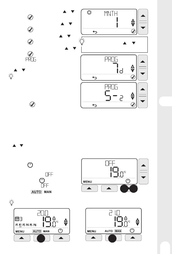 • АВТО: Термостат виконує попередньо записані внутрішні програми для кожного дня тижня. Ці програми