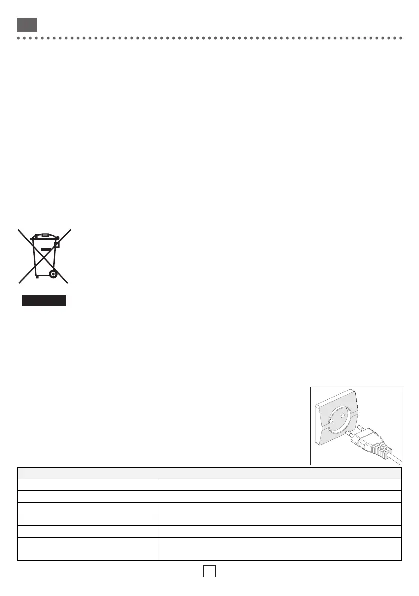 • Вставте вилку в стінну розетку 220-240 В 50-60 Гц