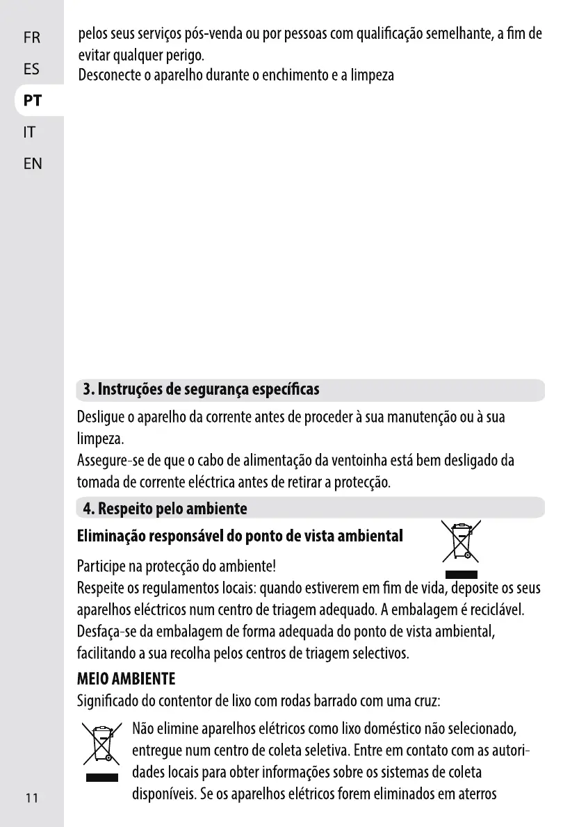 Nunca deixe água no reservatório quando o eletrodoméstico não estiver a ser utilizado.