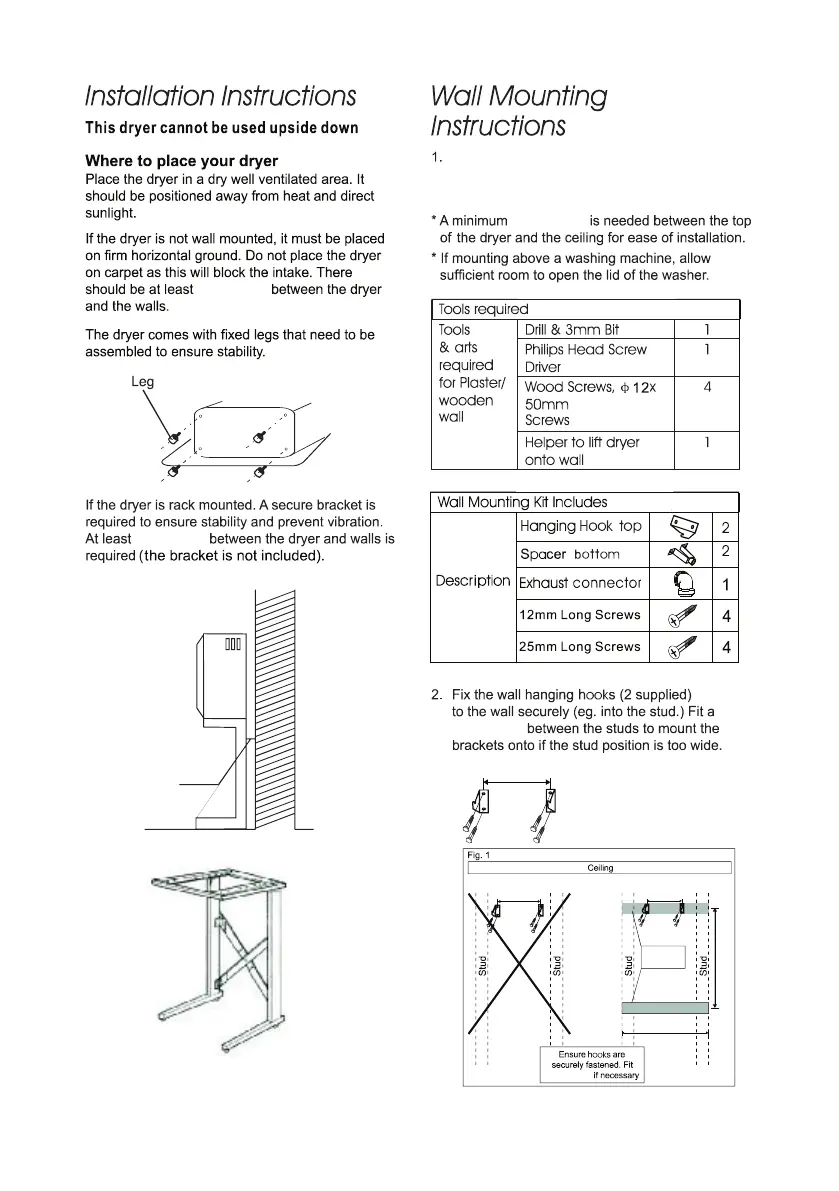 Determine and mark the dryer position on the wall.