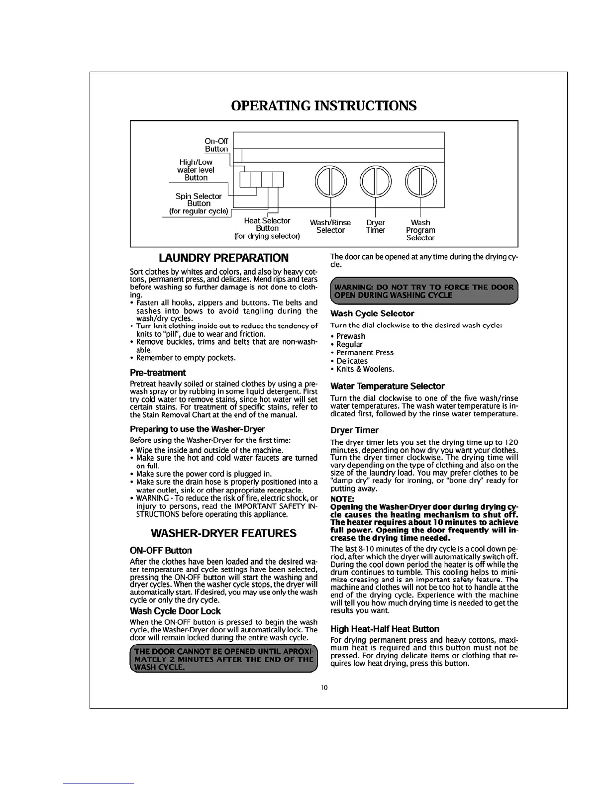 Equator CLOTHES-PROCESSOR EZ 3600 CEE - Operating Instructions; Laundry Preparation and First Use; Washer-Dryer Features and Cycles; Heat Settings for Drying