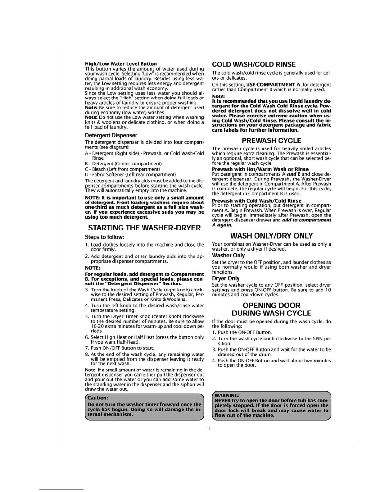 Equator CLOTHES-PROCESSOR EZ 3600 CEE - Starting and Using the Washer-Dryer; Operating Procedures and Cycle Selection