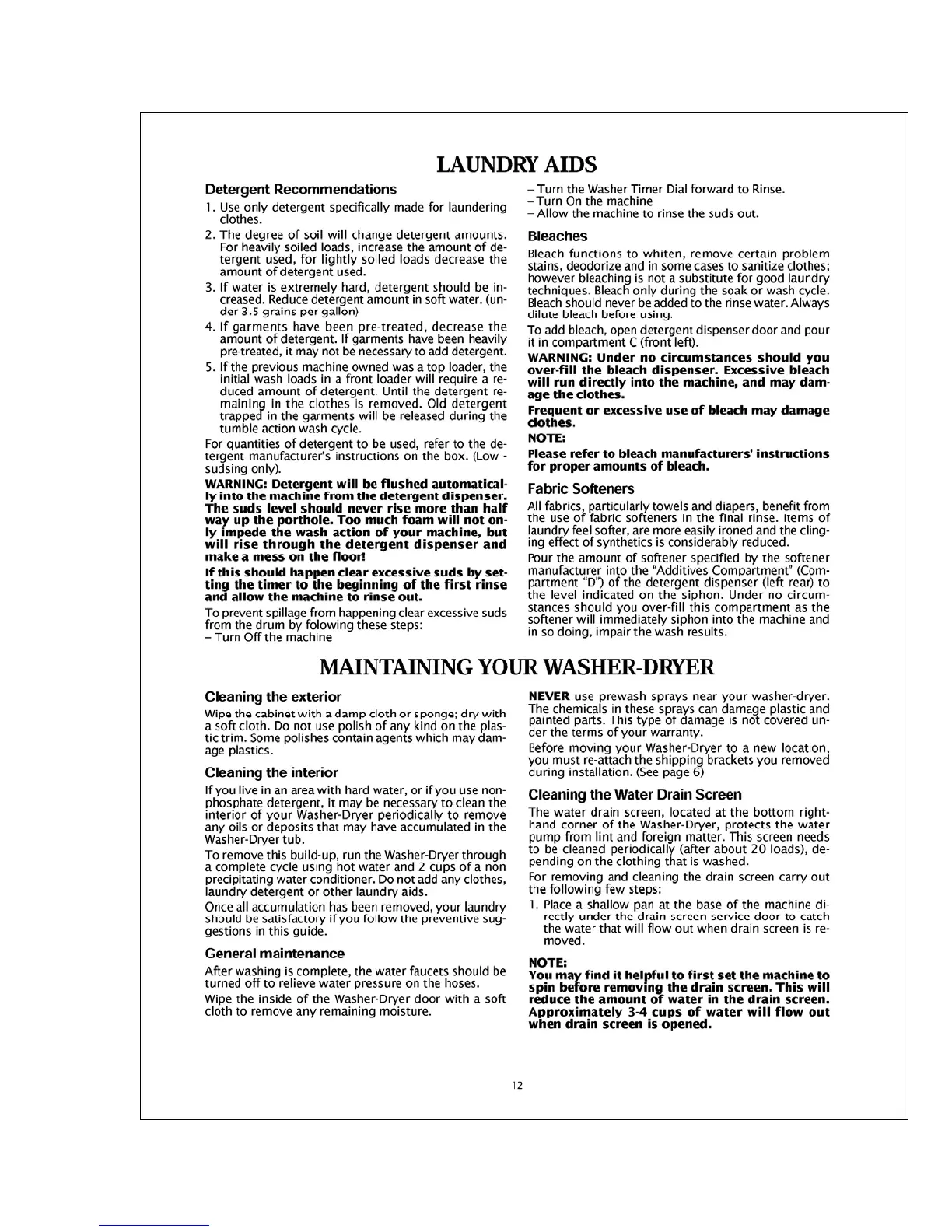 Equator CLOTHES-PROCESSOR EZ 3600 CEE - Laundry Aids; Maintaining Your Washer-Dryer; Detergent Recommendations; Cleaning the Exterior