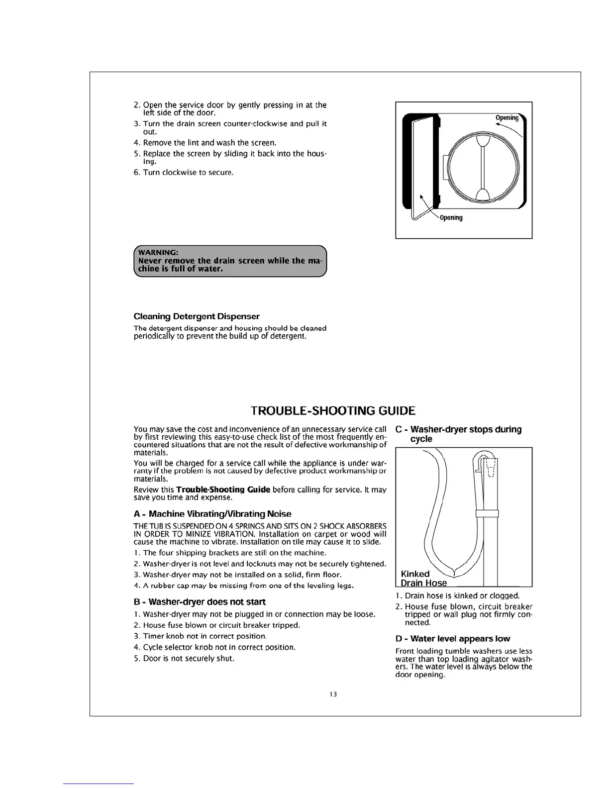 Equator CLOTHES-PROCESSOR EZ 3600 CEE - Trouble-Shooting Guide: Basic Issues; Machine Vibration, Start, and Stop Issues; Water Level and Noise Diagnosis