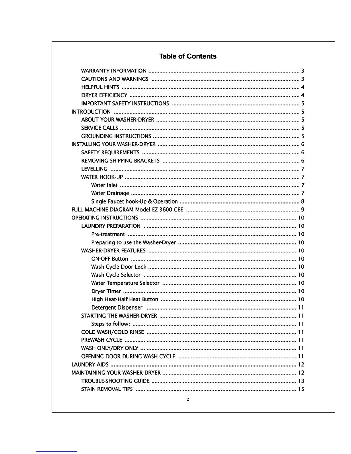 Equator CLOTHES-PROCESSOR EZ 3600 CEE - Table of Contents