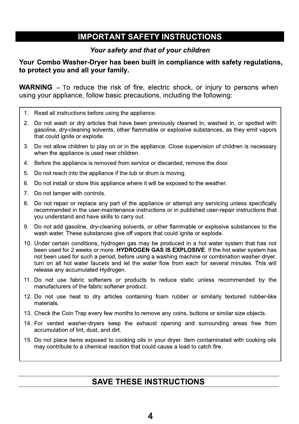 Equator Super Combo 4400 - Important Safety Instructions; General Safety Precautions