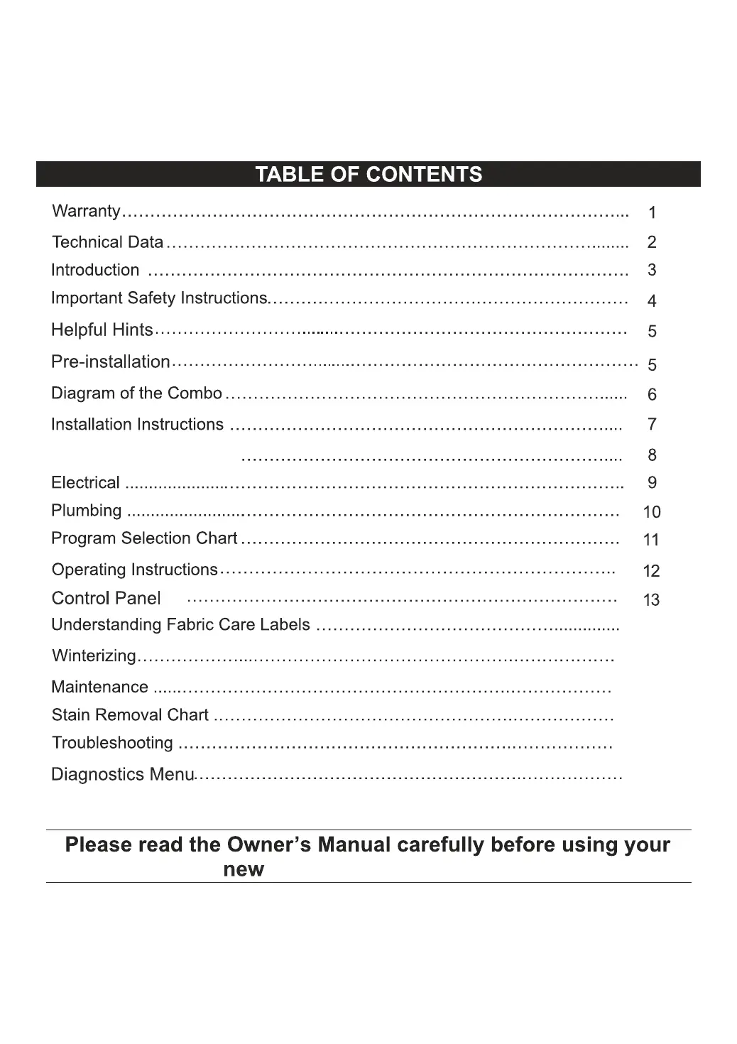 Equator Super Washer 824N - Table of Contents