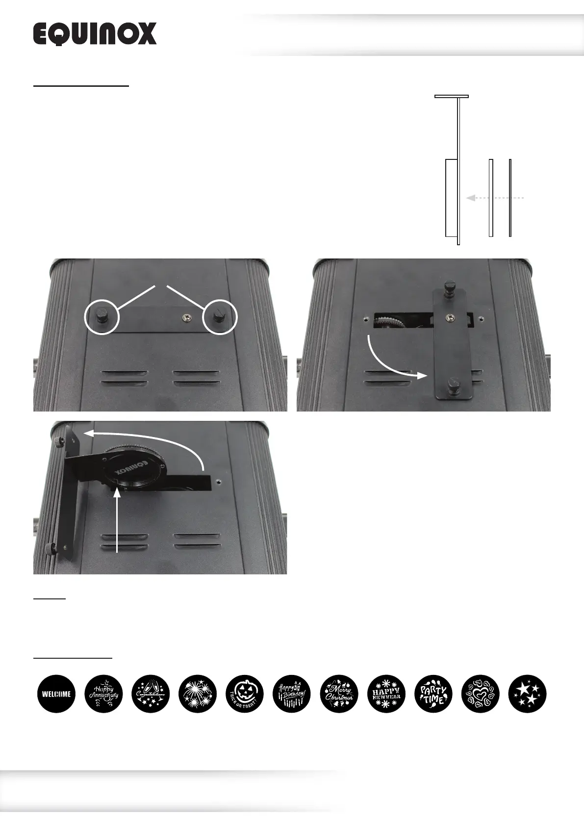 The Gobo Projector XP is supplied with 11 steel gobo’s. To replace the gobo