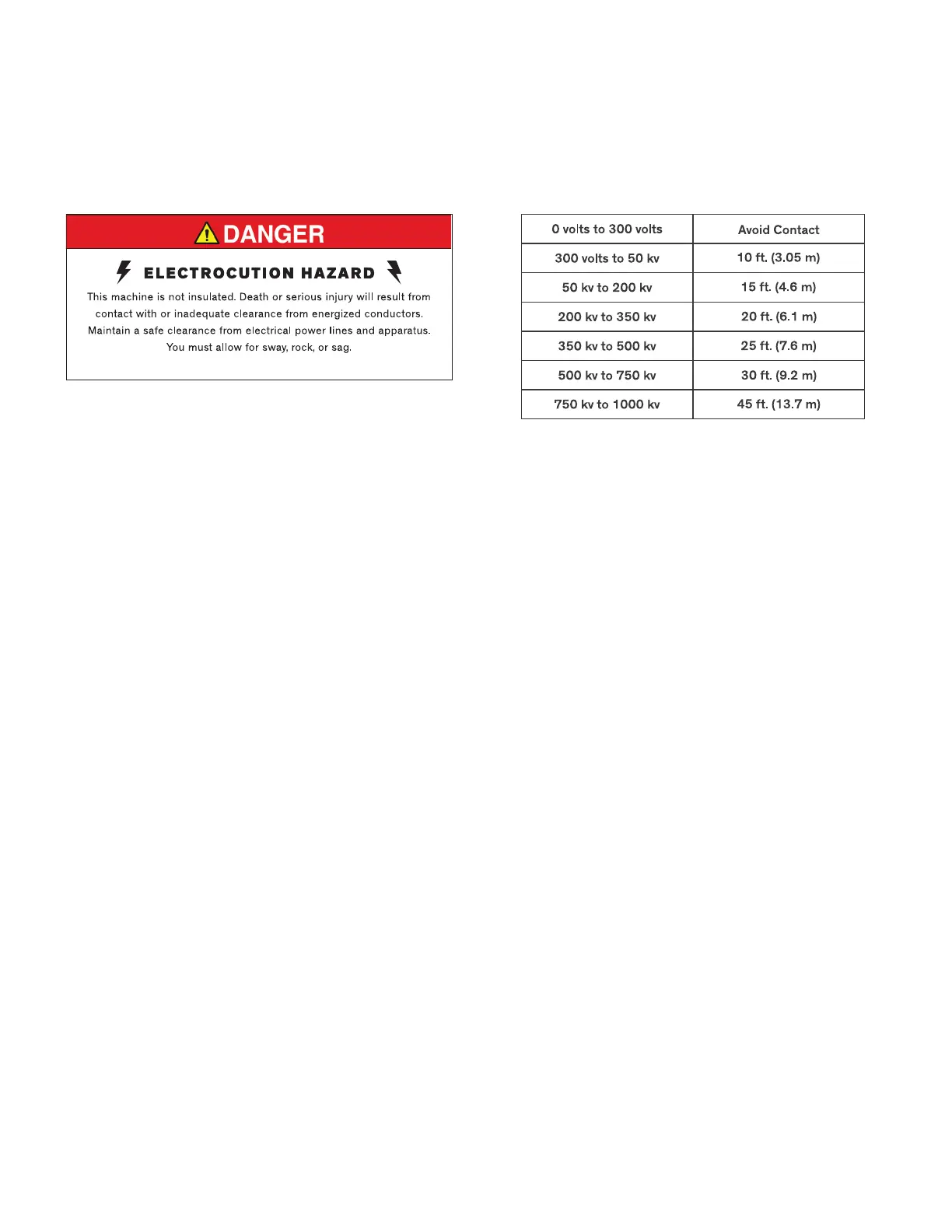 swaying or sagging power lines. The following table provides the minimum distances which should be
