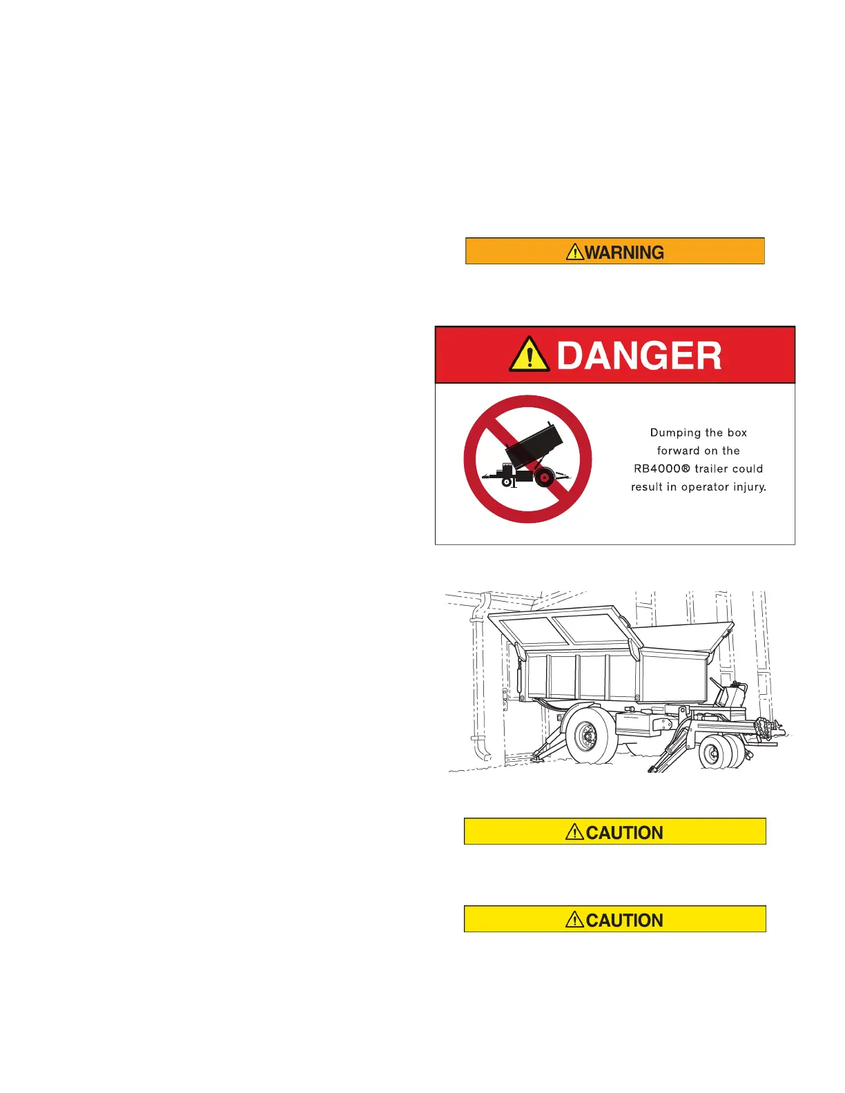 • Never tilt the dump box forward if it is over